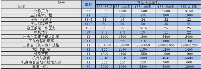 液壓壓裝機(jī)技術(shù)參數(shù):